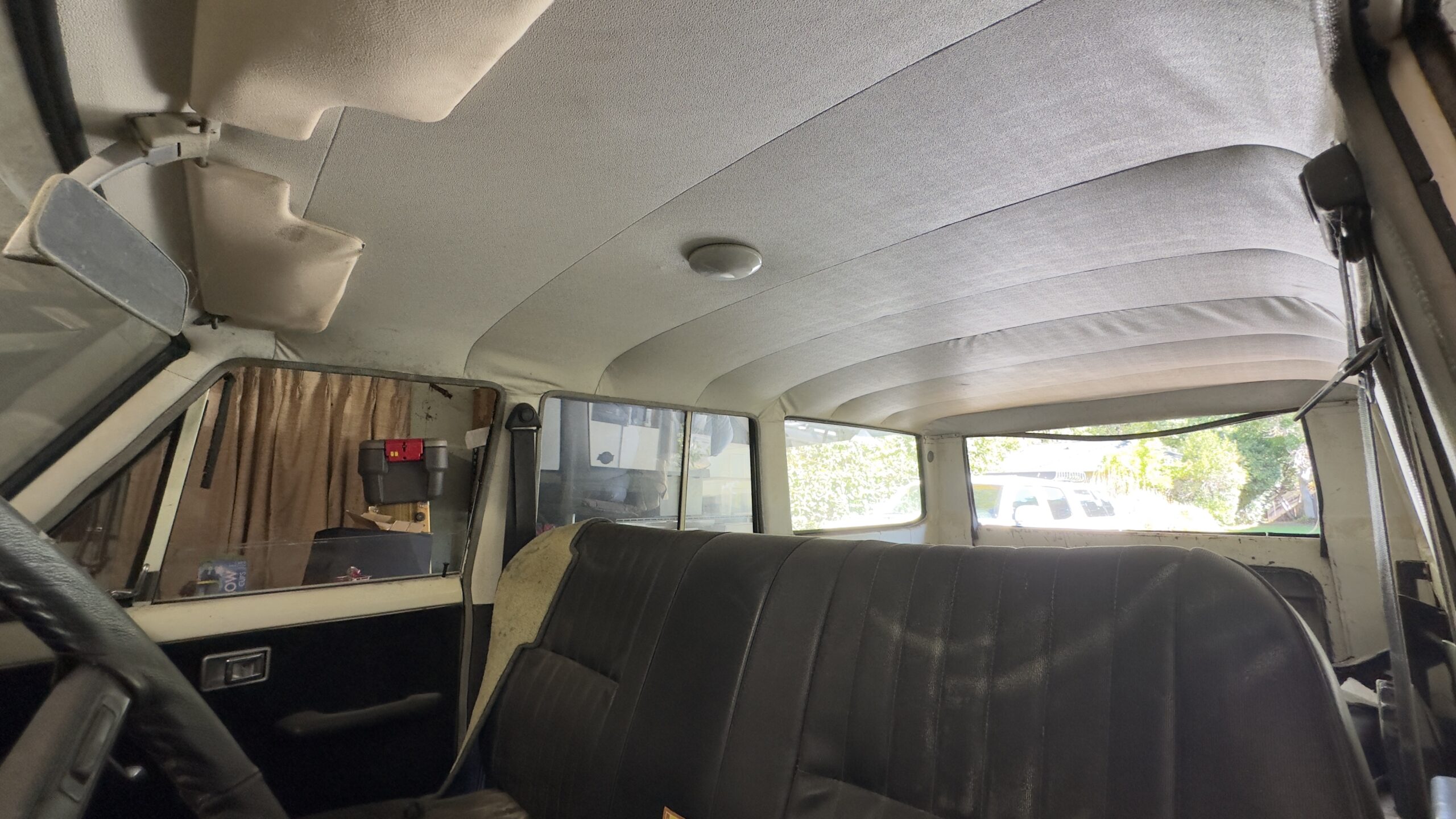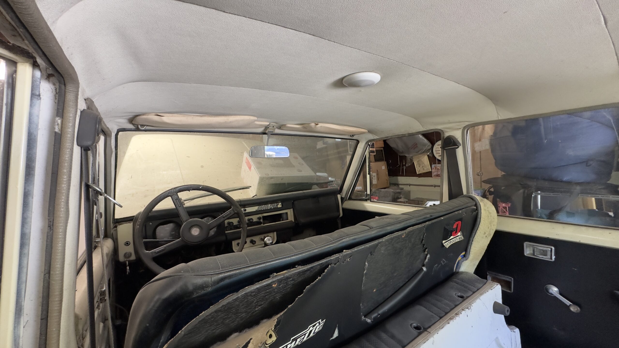 Interior includes dash, gauges, and front/rear bench seats